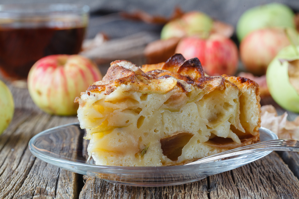- Яблочный пирог по-новому: Отличное решение, если под рукой нет яиц. Идеален для тех, кто хочет получить слоёный пирог без замешивания теста.