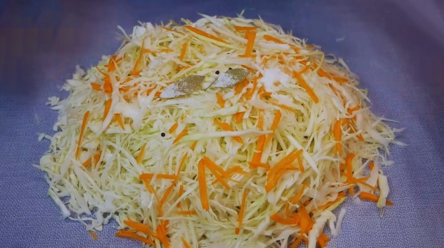 Ключевой момент в приготовлении — не мять капусту, а аккуратно перемешивать ее с морковью. Затем овощи заливают рассолом, тщательно распределяя смесь в кастрюле, и оставляют при комнатной температуре на 1-2 часа. Это позволяет капусте лучше впитать соль и подготовиться к дальнейшему этапу.