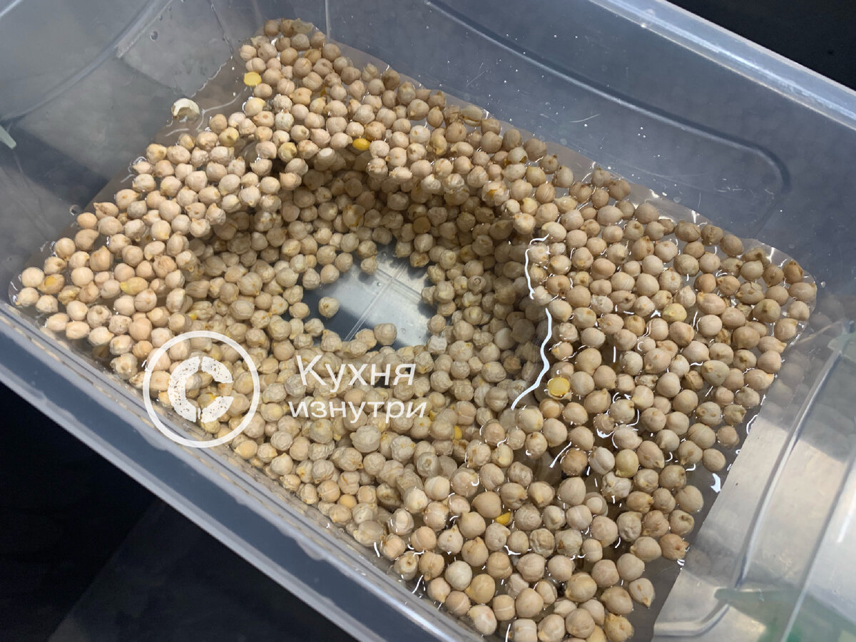 - Подготовка бобов: В первую очередь, нужно выбрать сорт гороха. Подойдет как мелкий, так и крупный нут. Поместите его в просторный контейнер.