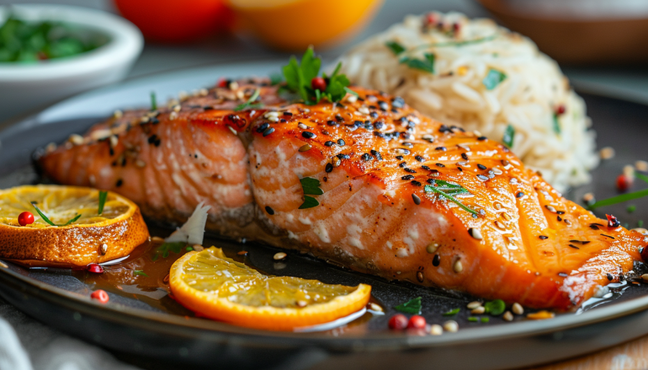 Погрузите стейки в маринад и оставьте их на 20 минут, чтобы они пропитались ароматами. Затем разместите горбушу на противне и укройте её тонкими дольками апельсина. Запекайте в духовке при температуре 180 градусов всего 25 минут. Во время ожидания, уделите время гарниру: приготовьте рис или выберите ваш любимый вариант — рыба и рис всегда вместе!
