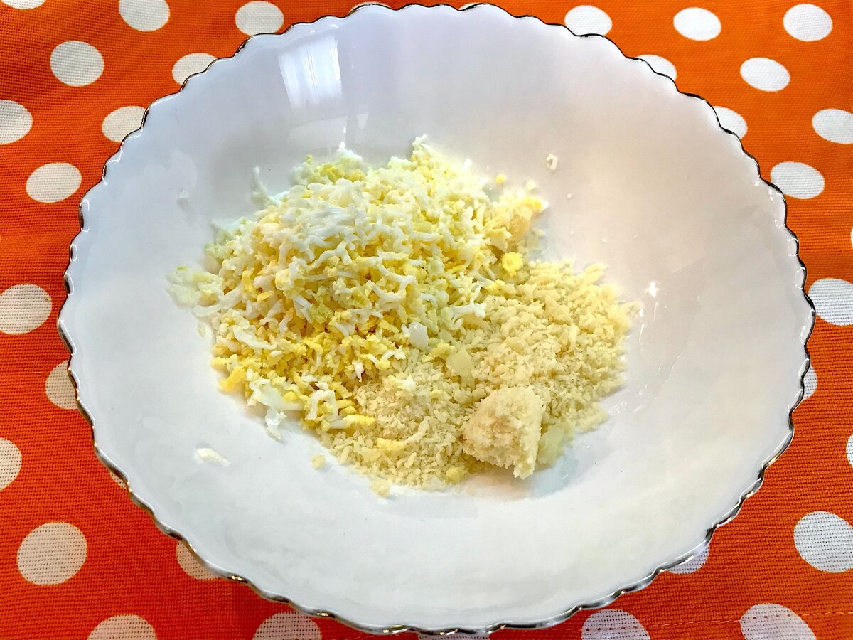Прежде всего, яйца следует сварить, остудить, очистить и натереть на мелкой терке, чтобы они идеально смешались с сыром, которого должно быть столько же, сколько и яиц, пишет источник.