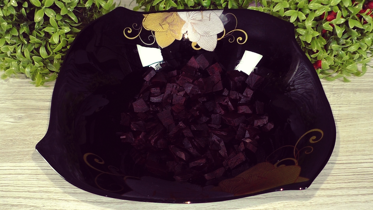 Также возможно запечь свеклу в духовке или приготовить в микроволновке. Остывшую свеклу нарезать кубиками и сразу заправить растительным маслом.