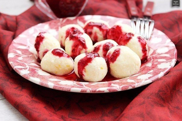 Полейте соусом творожные шарики и подавайте на стол. Приятного аппетита!