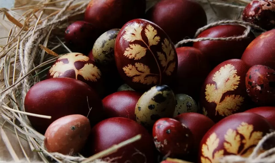 Ранее хозяйки собирали шелуху заранее для получения насыщенных оттенков, а яйца деликатно украшали листьями растений, оставляя на скорлупе природные отпечатки — своего рода предшественники современных техник декорирования.
