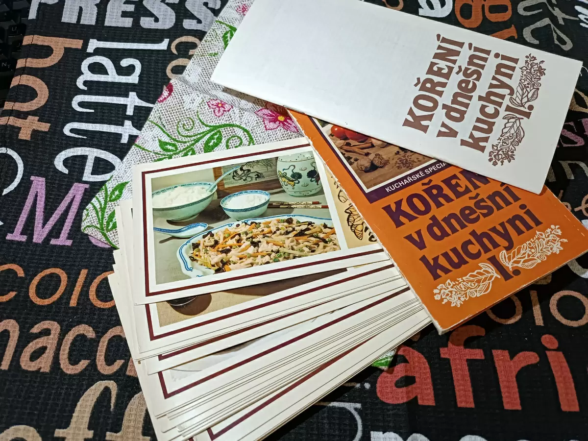 Набор выделяется оригинальным форматом 10x18 см. Общий тираж составлял 110,000 экземпляров. Обложка украшена выдающимся произведением художницы Милады Дочекаловой, а на обратной стороне каждой открытки указан список специй и их применения на чешском языке.