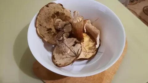 После очистки грибы нарезаются на средние кусочки и помещаются в кастрюлю с водой. Довести до кипения, не забыв снять пену, которая образуется. Грибы варятся около 10 минут, за это время они начнут оседать, а бульон сгущается и темнеет.