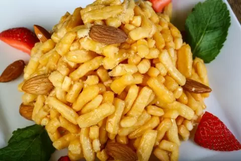 Ищете интересный десерт для угощения? Обратите внимание на чак-чак — жареный медовый пирог с миндалем из Татарстана, который также известен под названием «горка». Это лакомство традиционно формируется в виде небольшой пригорки, что и является источником его названия.