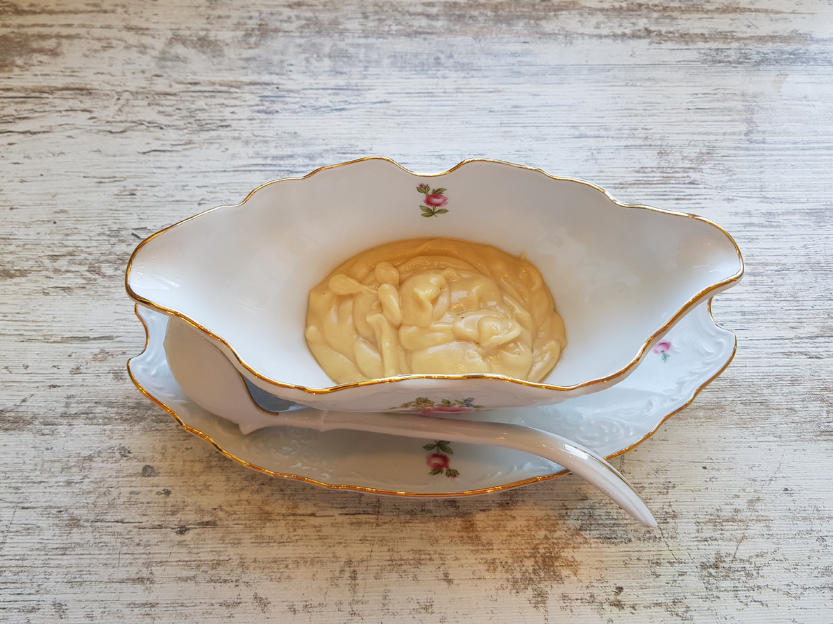 Если необходимо подождать с подачей, выделите соус в кастрюльку и разместите его на водяной бане, чтобы он остался теплым.