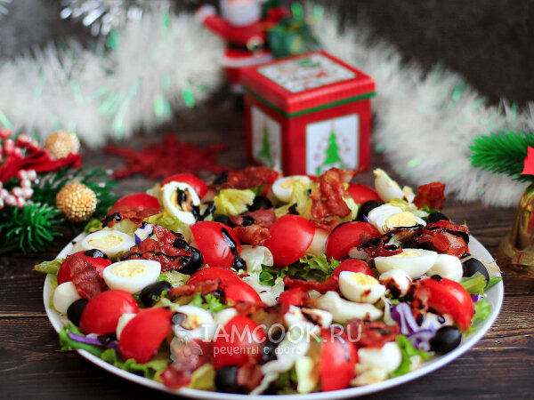 Название блюда вызывает ассоциации с рождественским венком, а его яркая палитра с красными помидорами черри, зелеными листьями салата и золотистыми яичными желтками создает настоящий кулинарный шедевр. Обычные продукты в умелых руках превращаются в непревзойденное лакомство, которое не только радует глаз, но и доставляет наслаждение на вкус.