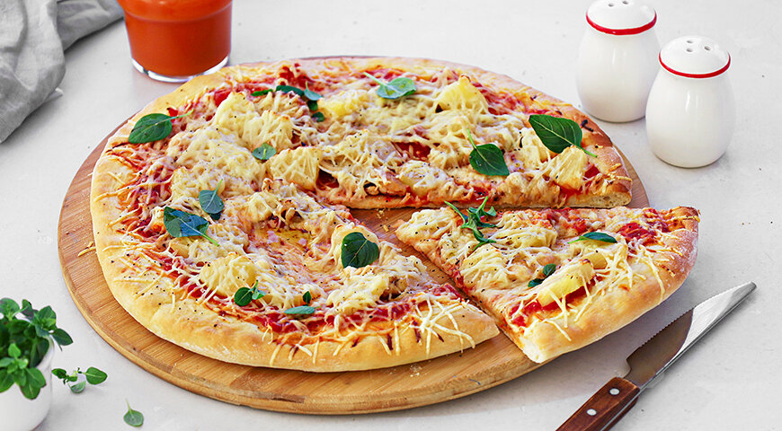 Курица, как известно, очень универсальный ингредиент, который нравится большинству людей. Пицца с ананасами не только сытная, но и легкая, что делает ее отличным выбором для любого приема пищи. Для тех, кто еще не пробовал это комбо, данный рецепт станет отличной возможностью создать что-то новое и удивительное на своей кухне!