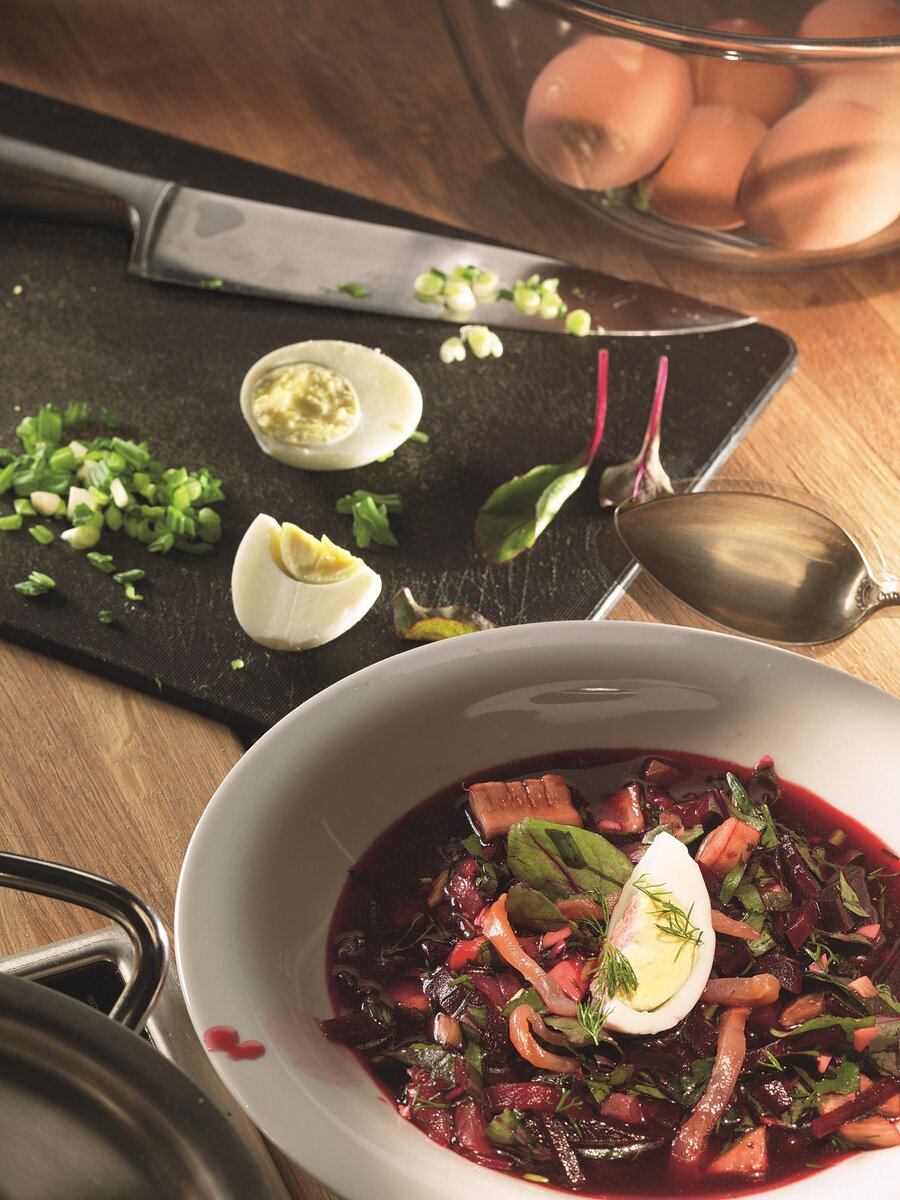 Ботвинья – это не просто суп, это кулинарный коворот, в котором сочетаются элементы свекольника и окрошки с большими порциями свежих трав и зелени. Анчоусы здесь выполняют роль своеобразной приправы, добавляя сочности и глубины вкуса. Не забудьте про разнообразие копченой и вареной рыбы, а также мяса и колбасы, как в традиционной окрошке, пишет Дзен-канал "Еда.ру".