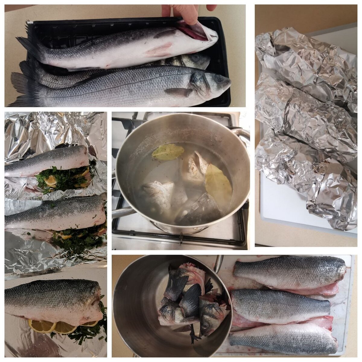 После предварительной обработки, она очистила рыбу от чешуи и внутренних органов, которые отправились в бульон. Соль, свежая петрушка, укроп и лимон завершили процесс подготовки — рыба была завернута в фольгу и убрана в морозильник.