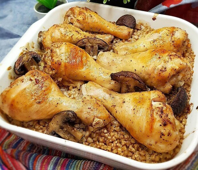 Куриные ножки с грибами и гречкой: легкий рецепт для ужина