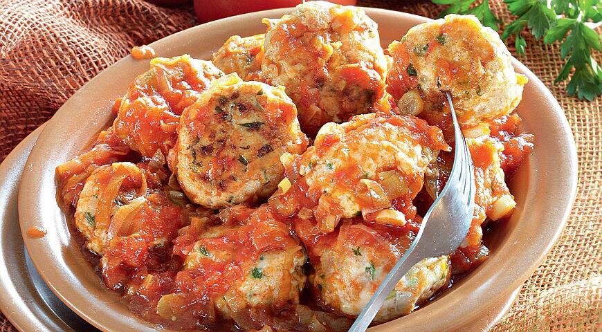 Тефтели – это шарики из мясного фарша, которые по размеру больше фрикаделек, но меньше рубленных котлет. Их отличает не только форма, но и технологии приготовления. Перед жаркой тефтели обваливаются в муке, и чаще всего их тушат в ароматном соусе. Причём многие хозяйки делают так: сразу опускают их в кипящий соус, что значительно упрощает процесс готовки при этом не ухудшая вкус.