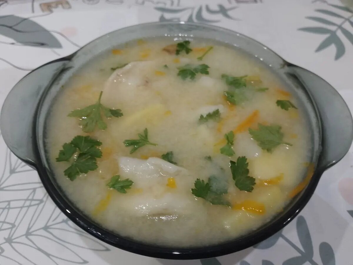 Когда суп сварится, его нужно снять с огня, посыпать зеленью и подавать к столу.