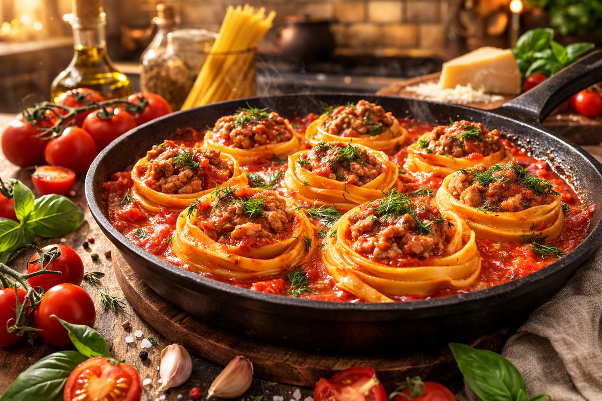Порой так хочется порадовать себя горячим и домашним блюдом, которое будет выглядеть эффектно и празднично. Паста-гнёзда с фаршем — это идеальный вариант. Это простое в приготовлении блюдо мгновенно преобразит ваш стол и подарит ощущение уюта в рутинный вечер.