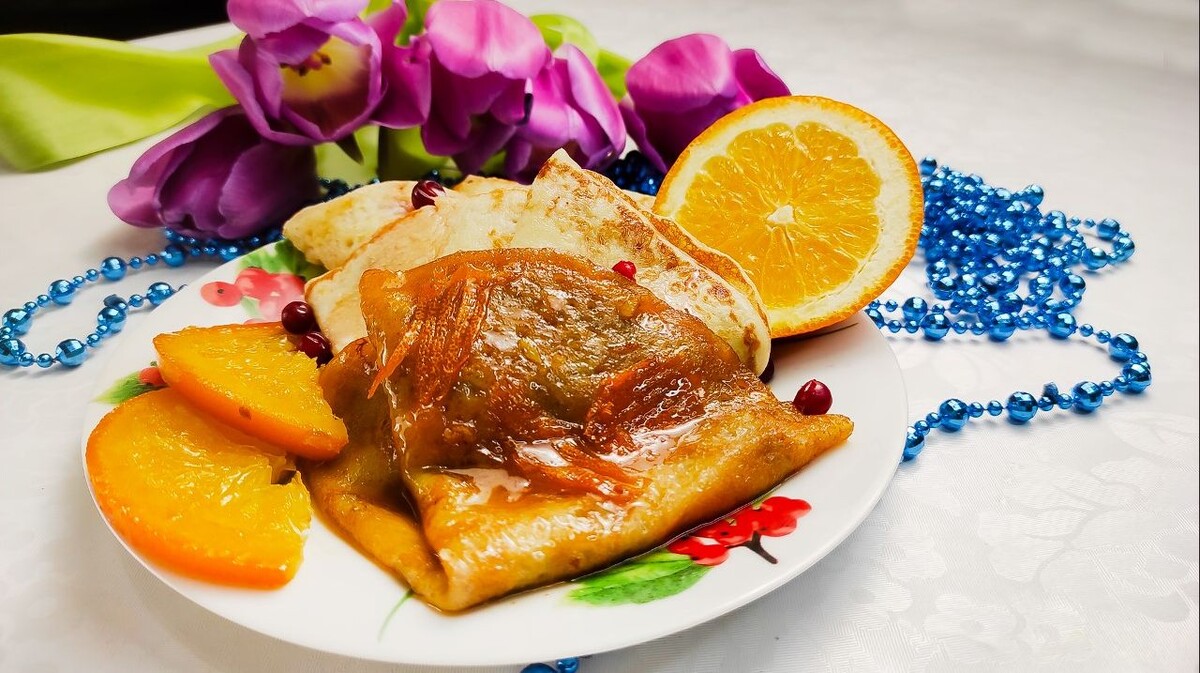 Блины креп-сюзетт с апельсиновым соусом фламбе – это не просто угощение, а настоящий кулинарный шедевр, который станет звездой Масленицы 2026! Их неповторимый вкус сочетает сладость и легкую кислинку апельсина, с добавлением тонкого аромата ванили, который подарит мгновения наслаждения после долгого дня.