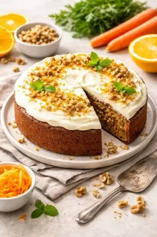 Морковный пирог с орехами и апельсином сочетает в себе насыщенные вкусы и ароматы осени. Это непросто десерт — это настоящая гастрономическая симфония, которая приятно удивит и порадует каждого, кто его попробует.