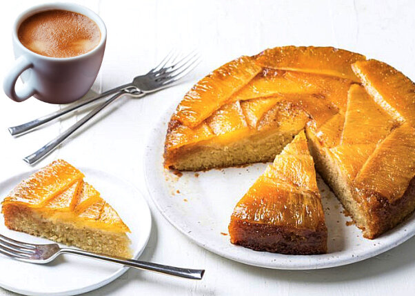 Выпекать около 45–50 минут, пока шпажка, вставленная в центр, не выйдет чистой. Оставить остужаться на 10 минут, затем аккуратно перевернуть на тарелку. Подавать теплым или при комнатной температуре, по желанию посыпав сахаром.